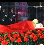روح بلند پیشوای کمونیستهای جهان و رهبر خلق قهرمان کره به آن بالا پیوست و دل مالال از عشق به خلق رنجکشیدهی خود را از حرکت ایستاند. او که جهان در برابر عظمتش چونان قطرهای بود و سعادت و رفاه و عظمت ابدی کره شمالی تنها یک چشمهاش بود...